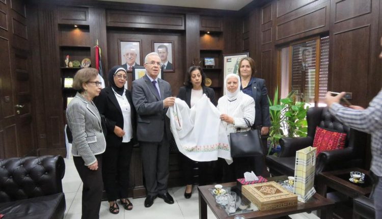بمناسبة اليوم الوطني للمرأة الفلسطينية قام وفد نسائي ممثلاً بأخوات عن اتحاد المرأة ومنظمات نسائية بزيارة إلى سعادة السفير الدكتور سمير الرفاعي في مقر السفارة صباح اليوم. حيث تقدم سعادته بأحر التهاني بهذا اليوم مؤكداً على فخرنا بدور المرأة الفلسطينية الرائد في مسيرة النضال الوطني الفلسطيني وفي كافة مناحي الحياة.