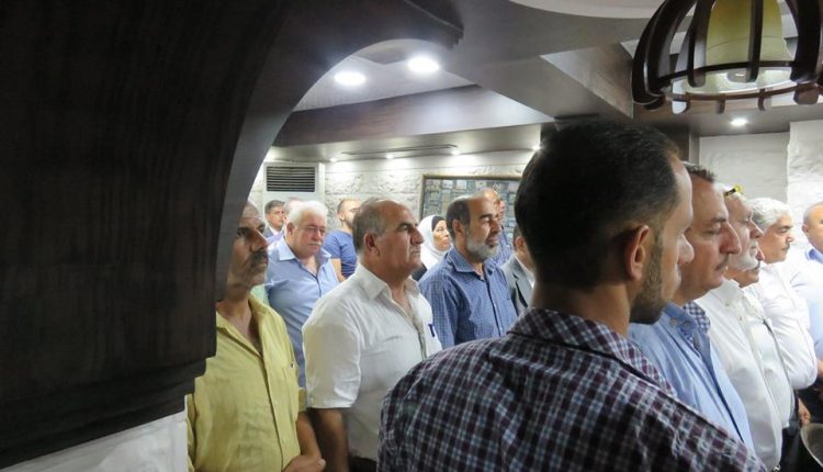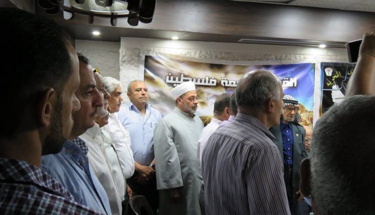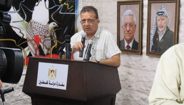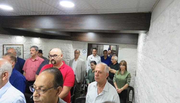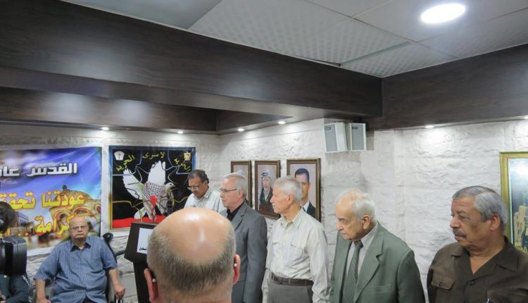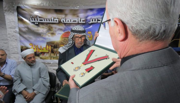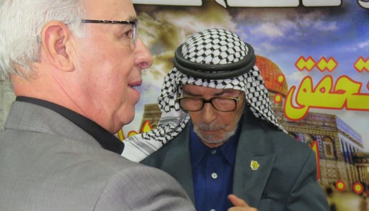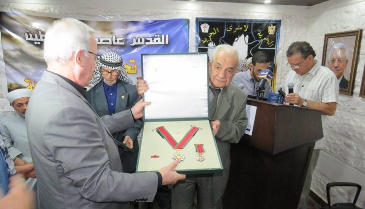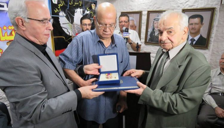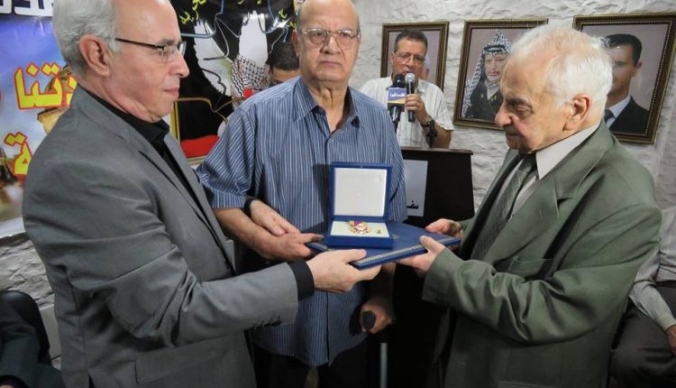 بتعليمات من سيادة الرئيس محمود عباس أقامت سفارة دولة فلسطين بدمشق اليوم تكريماً لكل من المناضل حسن صويلي الملقب بأبو أحمد الجزائري والمؤلف الموسيقي المبدع حسين نازك، وقد ألقى سعادة السفير الخالدي كلمة نقل فيها تحيات سيادة الرئيس محمود عباس والذي يعقد هذا اللقاء باسمه وبمبادرته الكريمة متحدثاً عن مآثر هاتين القامتين الفلسطينيتين اللتين نعتز ونفخر بهما مباركاً لهما هذا التقدير الكبير من سيادة الرئيس.وبحضور عدد كبير من أبناء شعبنا الفلسطيني وممثلي فصائل منظمة التحرير الفلسطينية قام سعادة السفير محمود الخالدي والدكتور سمير الرفاعي عضو اللجنة المركزية لحركة فتح بتسليم قرار المنح ووسام الشرف الرئاسي العسكري للمناضل أبو أحمد الجزائري كما تم تسليم قرار ووسام الرئاسة الثقافي والفني للموسيقار الكبير حسين نازك.