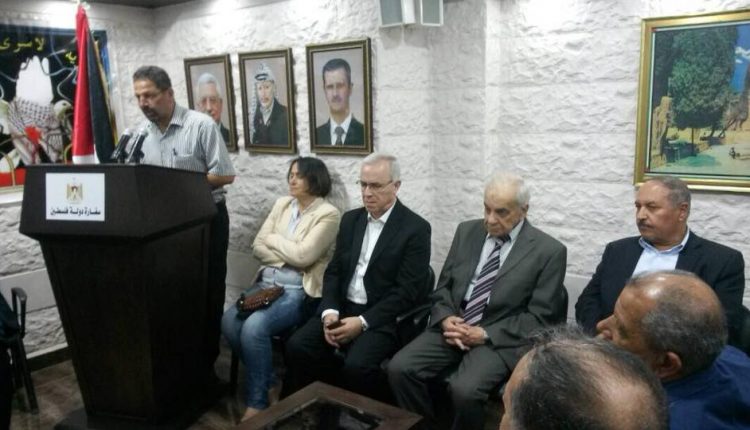 ضمن الحملة الوطنية الفلسطينية لإسقاط صفقة القرن وتحت شعار” تسقط صفقة القرن” أقامت فصائل العمل الوطني الفلسطيني بدمشق اليوم وقفة تضامنية في مقر سفارة دولة فلسطين حضرها العديد من أبناء الجالية الفلسطينية في سورية والقيادات الوطنية الفلسطينية وممثلي المنظمات الجماهيرية الفلسطينية. حيث ألقى سعادة السفير محمود الخالدي سفير دولة فلسطين بدمشق كلمة فلسطين والتي تحدث فيها عن أهم بنود وأهداف ومخاطر صفقة القرن التي تتمثل في تصفية القضية الفلسطينية سياسياً وإلى الأبد وطي ملف حق العودة وإسقاطه نهائياً وتكريس الانقسام بين الضفة والقطاع بإنشاء كيان فلسطيني في الضفة بدون سيادة وعاصمته أبوديس وتحويل قضية قطاع غزة الى قضية انسانية اقتصادية وكذلك خلق قيادات فلسطينية بديلة. وطالب سعادته بسرعة إنهاء الانقسام لمواجهةصفقة القرن وأن من يريد فلسطين يريد إنهاء الانقسام ومن يريد استمراره عليه ألا يدعي أنه فلسطيني لأن وجود هذه الثغرة ألا وهي الانقسام هي الأخطر منذ فجر القضية وهي ثغرة لتمرير المؤامرة الصهيونية.