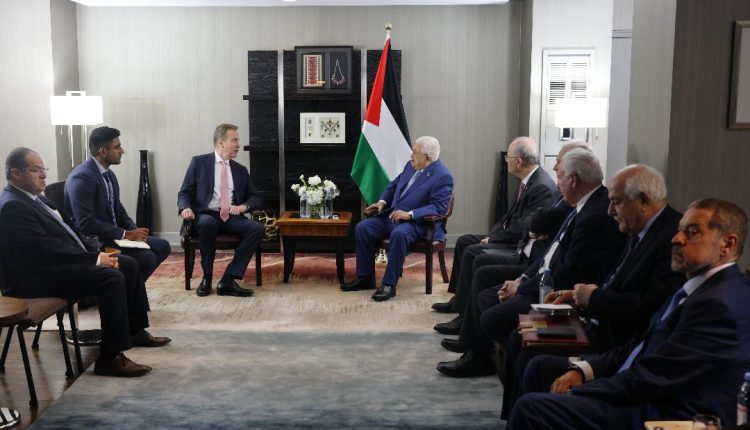 نيويورك 22-9-2024 وفا- التقى رئيس دولة فلسطين محمود عباس، اليوم الأحد، مع رئيس المنتدى الاقتصادي العالمي بورج برينده، على هامش مشاركته في اجتماعات الدورة الـ79 للجمعية العامة للأمم المتحدة، في نيويورك.