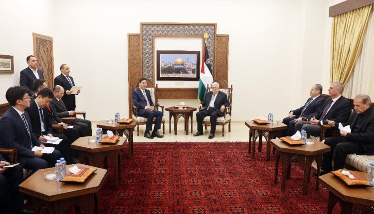 رام الله 18-1-2025 وفا- استقبل رئيس دولة فلسطين محمود عباس، اليوم السبت، بمقر الرئاسة في مدينة رام الله، المبعوث الصيني للشرق الأوسط تشاي جيون، والوفد المرافق له.