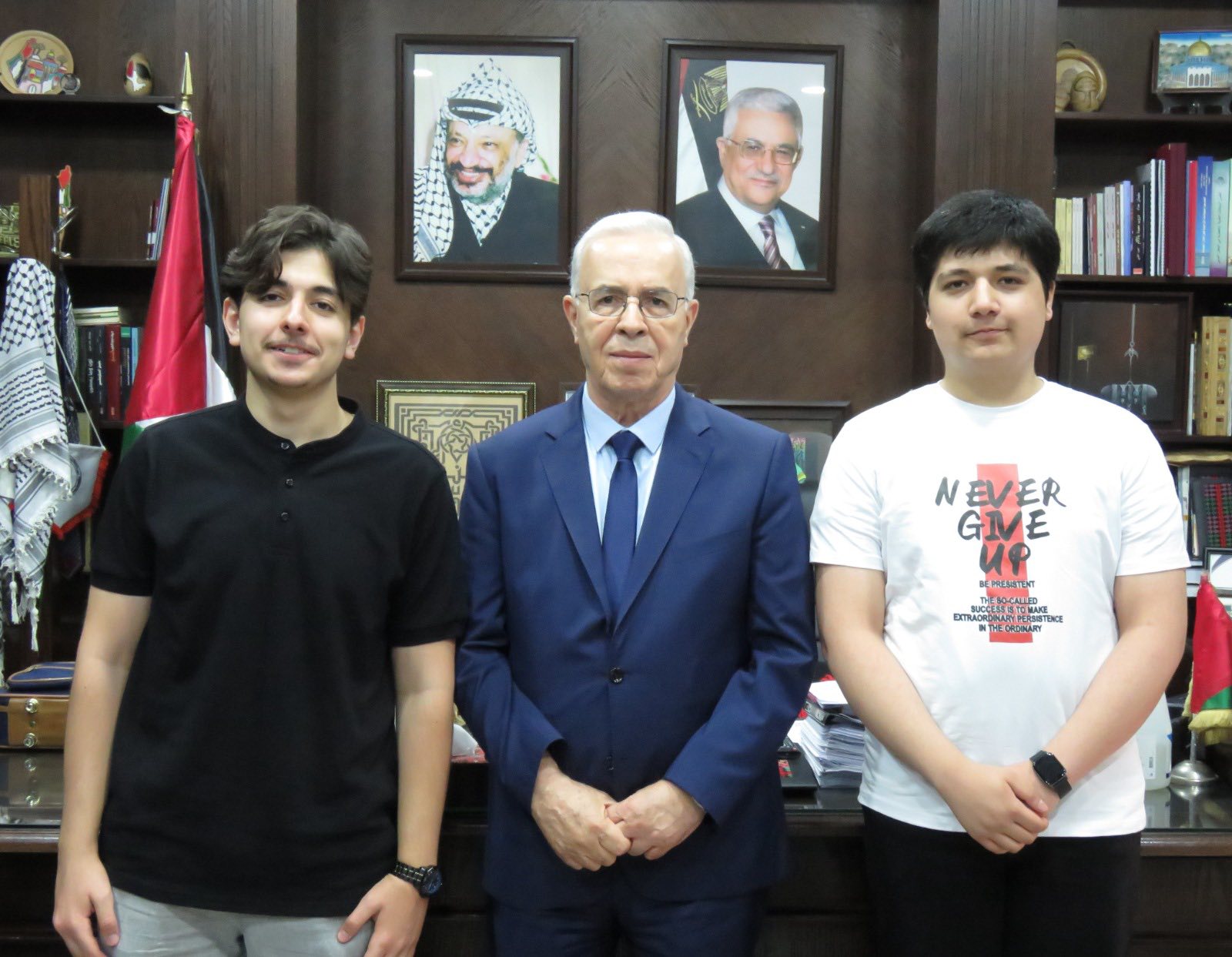 باسم سيادة الرئيس محمود عباس كرّم سفير دولة فلسطين في سورية الدكتور سمير الرفاعي، اليوم، في مقر السفارة بدمشق، الطالبين الفلسطينيين المتفوقين في شهادة التعليم الثانوي في سورية /محمد فارس عوض/ و /يحيى سليم الخطيب/، واللذين حصلا على المرتبة الأولى على مستوى الجمهورية العربية السورية بتحقيقهما المجموع الكامل.