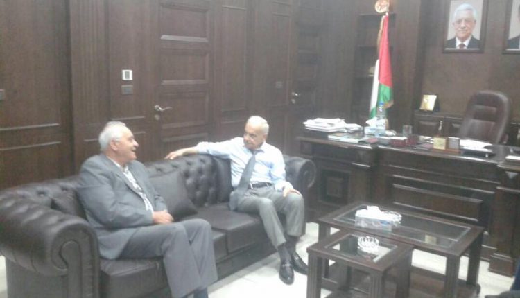 استقبل سعادة السفير محمود الخالدي أمس في مقر سفارة دولة فلسطين بدمشق الأمين العام للاتحاد الدولي لنقابات العمال العرب الأستاذ غسان غصن في اطار زيارته لبعض الرموز والقيادات الفلسطينية في سورية