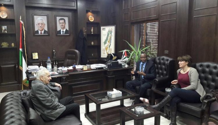 استقبل سعادة السفير / محمود الخالدي/ سفير دولة فلسطين بدمشق اليوم السيد / محمد عبدي أدر/ مدير عام وكالة الغوث / الأونروا/ في الجمهورية العربية السورية، حيث طرح السفير الخالدي العديد من القضاياالمتعلقة بالإغاثة والتربية والتعليم وكذلك القضايا الطبية في كل من مخيم اليرموك وخان الشيح والحسينية، وقد وعد من جانبه السيد المدير العام للوكالة بدراستها والرد عليها.
